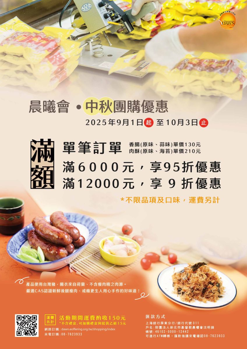 晨曦工作坊肉品中秋特惠活動,活動期間2025/9/1~10/3