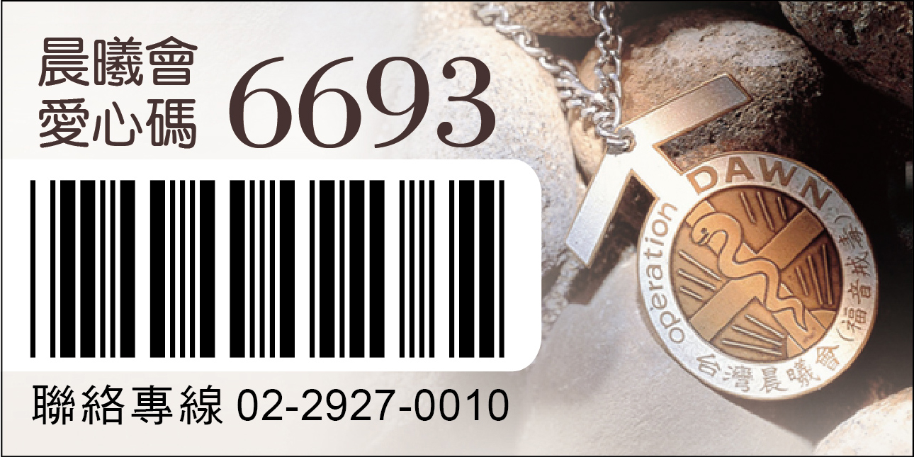 晨曦會捐贈碼 6693 (歡迎自行下載晨曦會愛心碼貼紙)