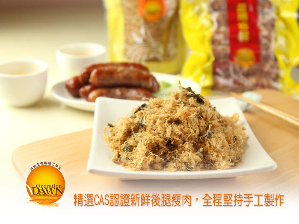 精選CAS認證新鮮後腿瘦肉,全程堅持手工製作、包裝。純自然用料,使用天然豬腸衣,提升好口感。肉酥真空包裝,冷凍保鮮。製作流程乾淨透明,工作環境整齊衛生,認真掌控用料品質,讓您可以放心食用。​​​​​​